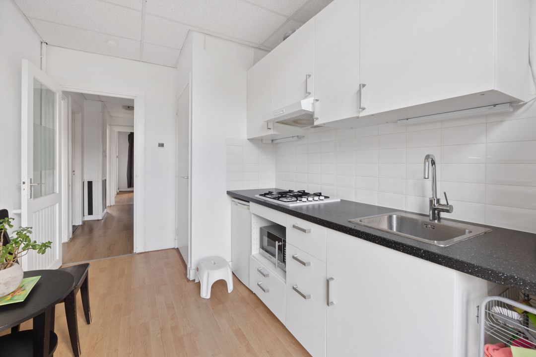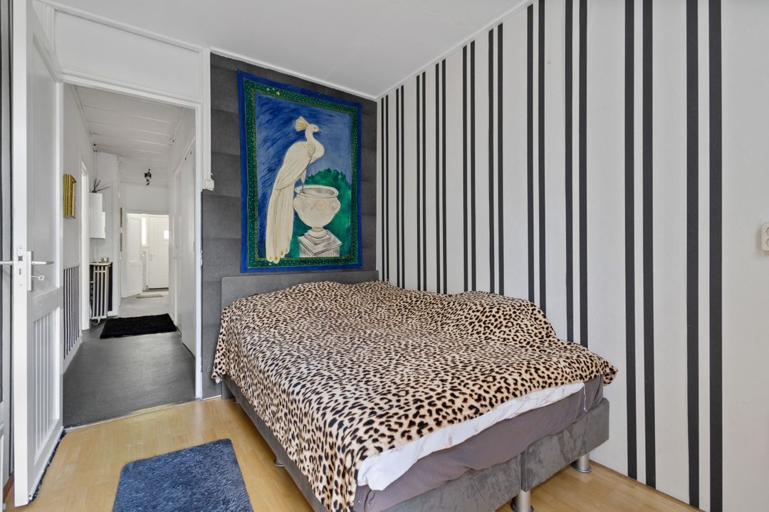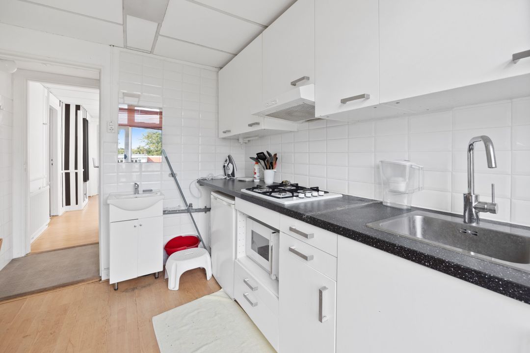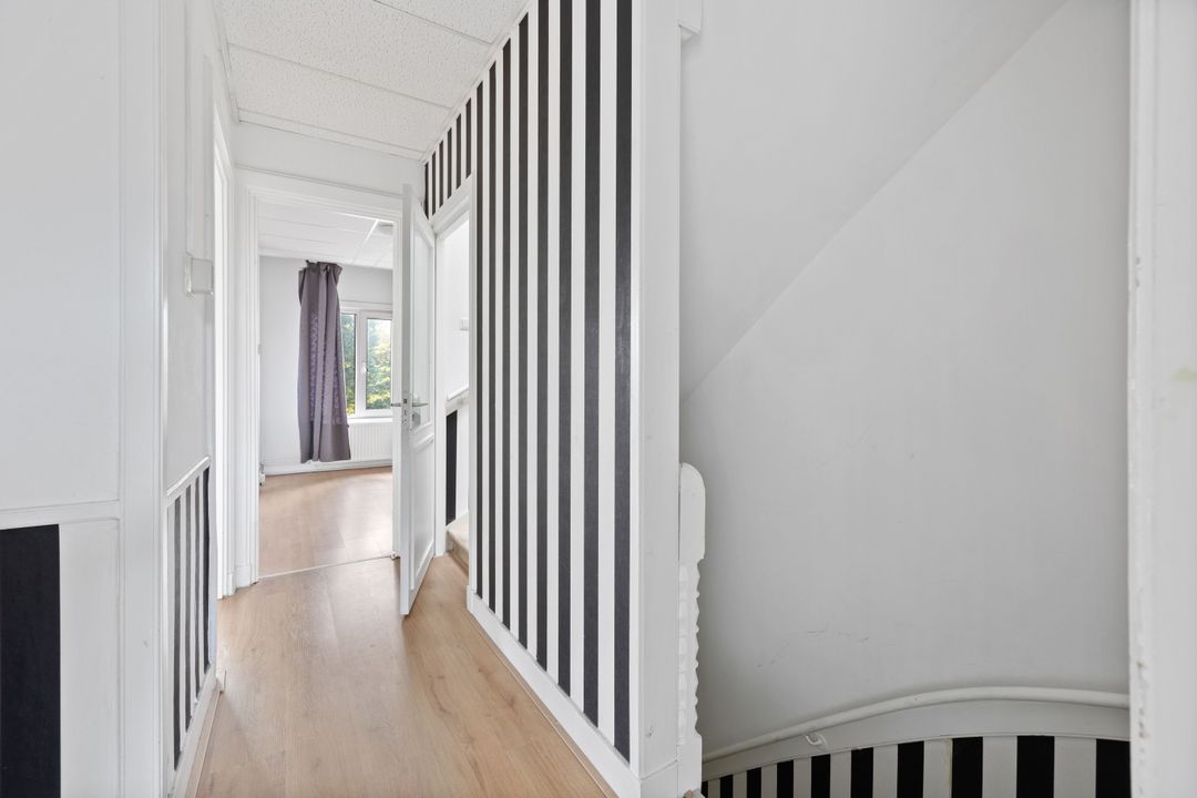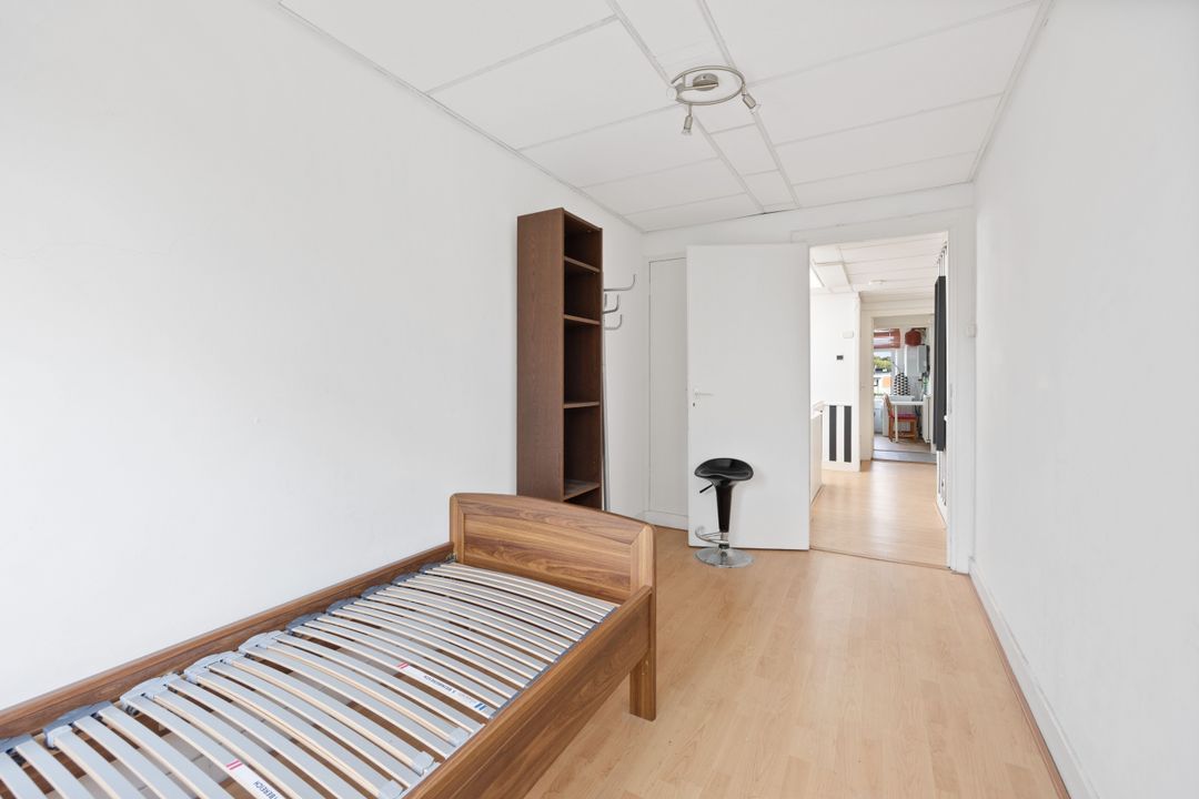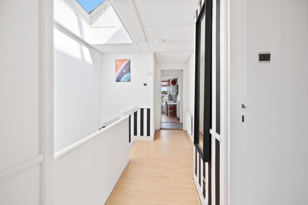 trapopgang naar de 2e verdieping met daklicht: overloop; betegeld toilet-/douchecombinatie met fontein; voor slaapkamer ca. 4,35x5,60m; voorzijkamer ca.2,15x4,30m met vaste kast; achter slaapkamer ca. 4,05x7,55m; keuken aan de achterzijde ca. 2,45x3,10m voorzien van modern keukenblok met gaskookplaat, afzuigkap, magnetron, koelkast, opstelling wasmachine, cv-combiketel (Atag Zready) en omvormer voor de zonnepanelen.