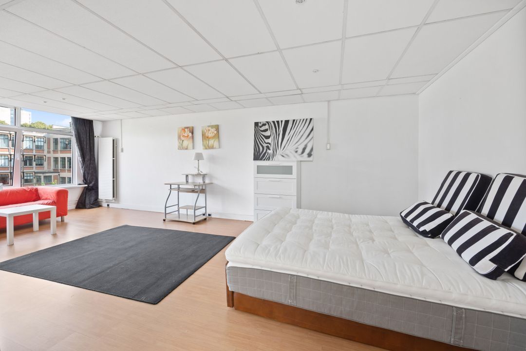 trapopgang naar de 1e verdieping: overloop; geheel betegelde toilet-/douchecombinatie ca. 1,05x2,10m; voor slaapkamer ca. 4,35x5,60m voorzien van tripleglas; voorzijkamer ca. 2,20x3,75m met vaste kast; achter slaapkamer ca. 4,00x5,45m; achter zijkamer ca. 2,50x4,20m voorzien van keukenblok met kookplaat, afzuigkap, vaste kast, opstelling wasmachine/droger en openslaande deuren naar het achterbalkon ca. 1,90x2,80m; betegelde badkamer ca. 2,00x4,00m voorzien van ligbad, separate douche en wastafelmeubel.