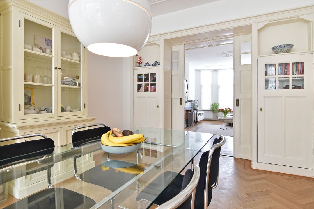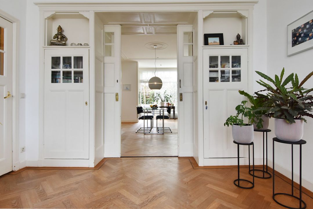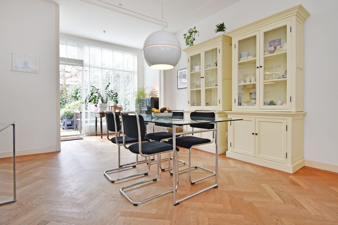DIT ZEER GOED ONDERHOUDEN ZESKAMER HERENHUIS MET ACHTERTUIN EN ACHTERBALKON OP HET WESTEN IS GELEGEN OP EIGEN GROND AAN EEN LOMMERRIJKE LAAN IN BESCHERMD STADSGEZICHT STATENKWARTIER.
