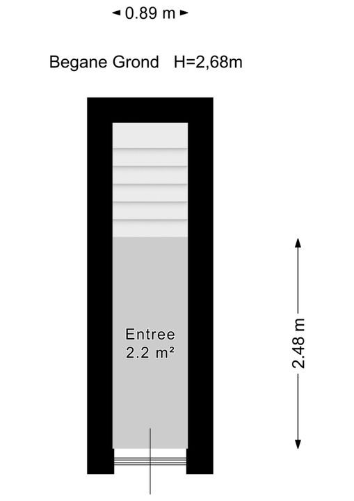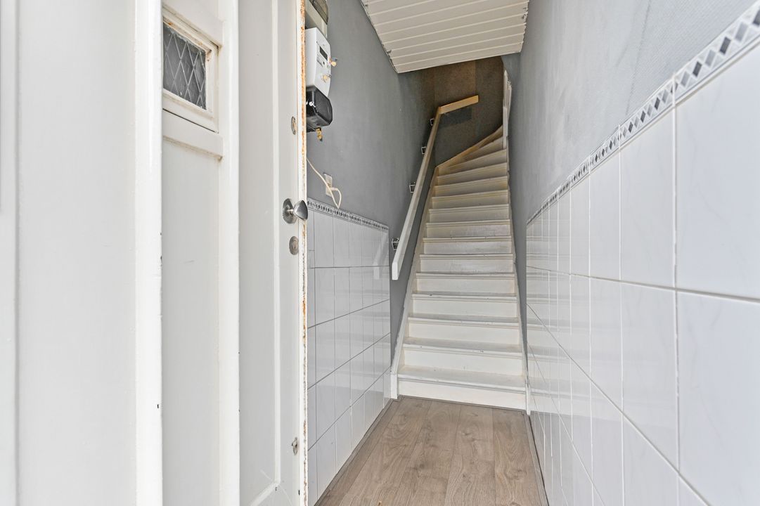 entree op straatniveau; hal met meterkast (elektra 7 groepen + ALS) en trapopgang naar de 1e verdieping: