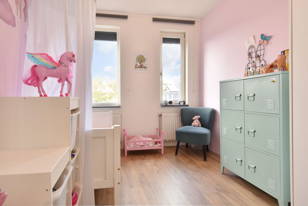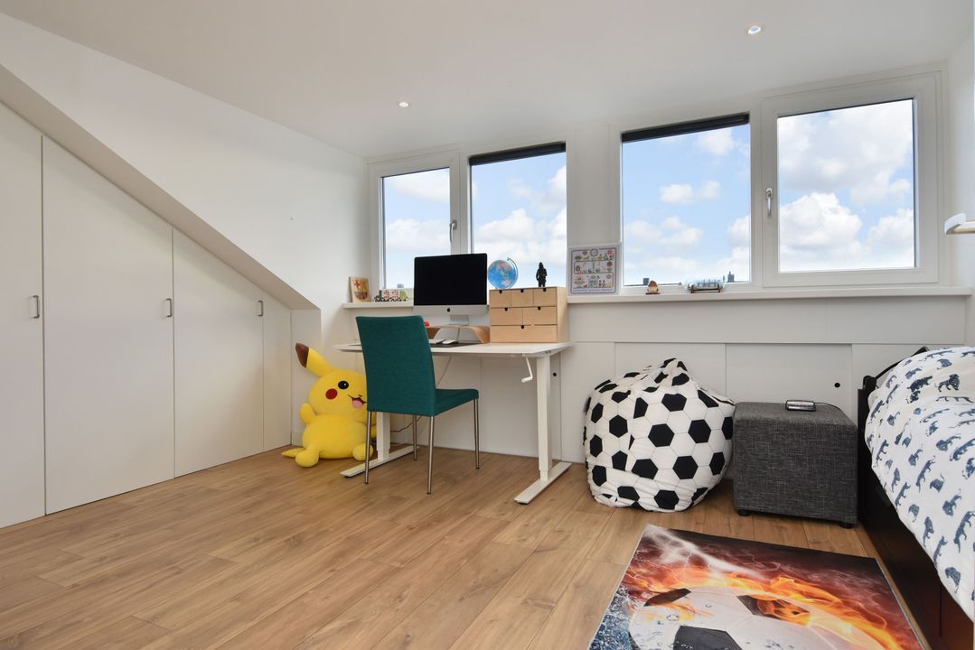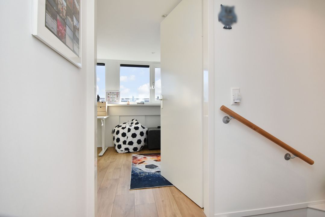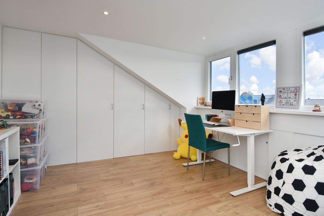 trapopgang naar de 2e verdieping: overloop; voor slaapkamer ca. 3,00x3,45m voorzien van dakkapel met kunststof kozijn (Super+) met elektrische rolluiken en bergruimte onder het dakkapel; achter slaapkamer over de gehele breedte ca. 3,35x4,55m voorzien van dakkapel met kunststof kozijn (Super+), geïntegreerde rolluiken en bergruimte onder het dakkapel; kastenwand met opstelling CV-combiketel (Remeha Tzerra 2016) en W-T-W installatie (2023).