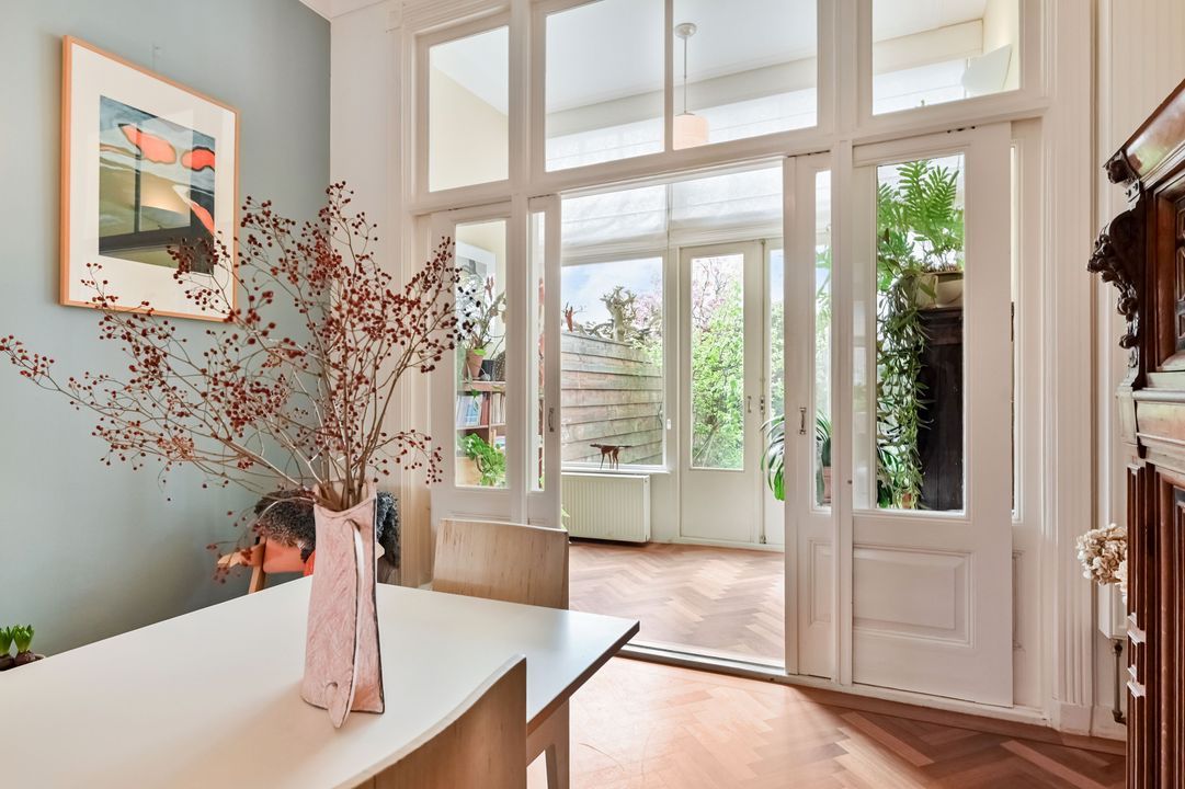 * het herenhuis is voorzien van houten buitengevelkozijnen voorzien van dubbele beglazing, HR++glas (april 2026) en glas-in-lood bovenlichten;