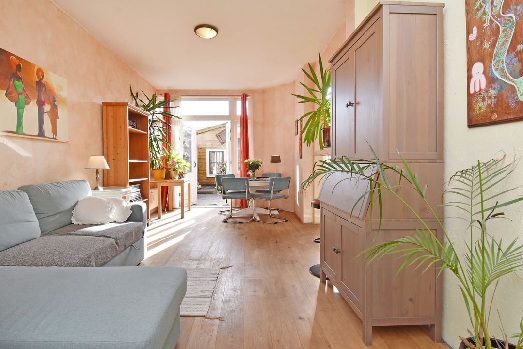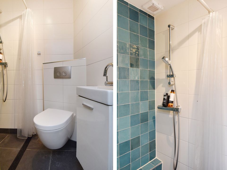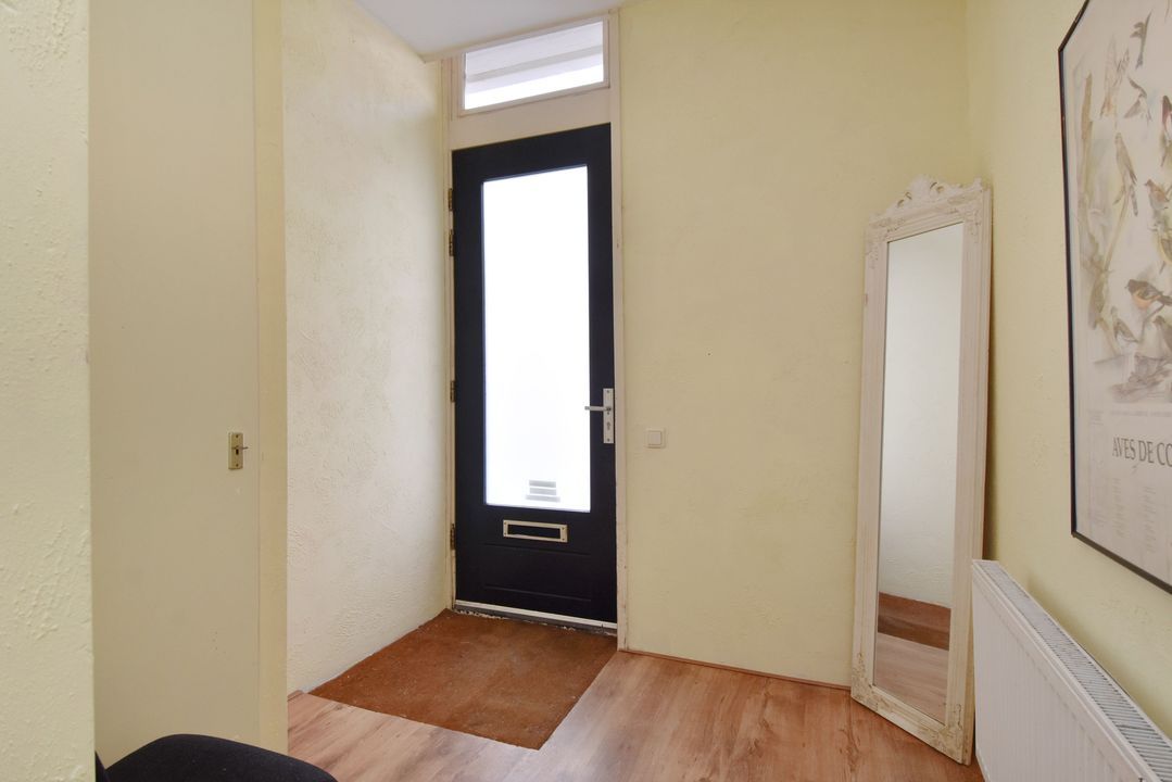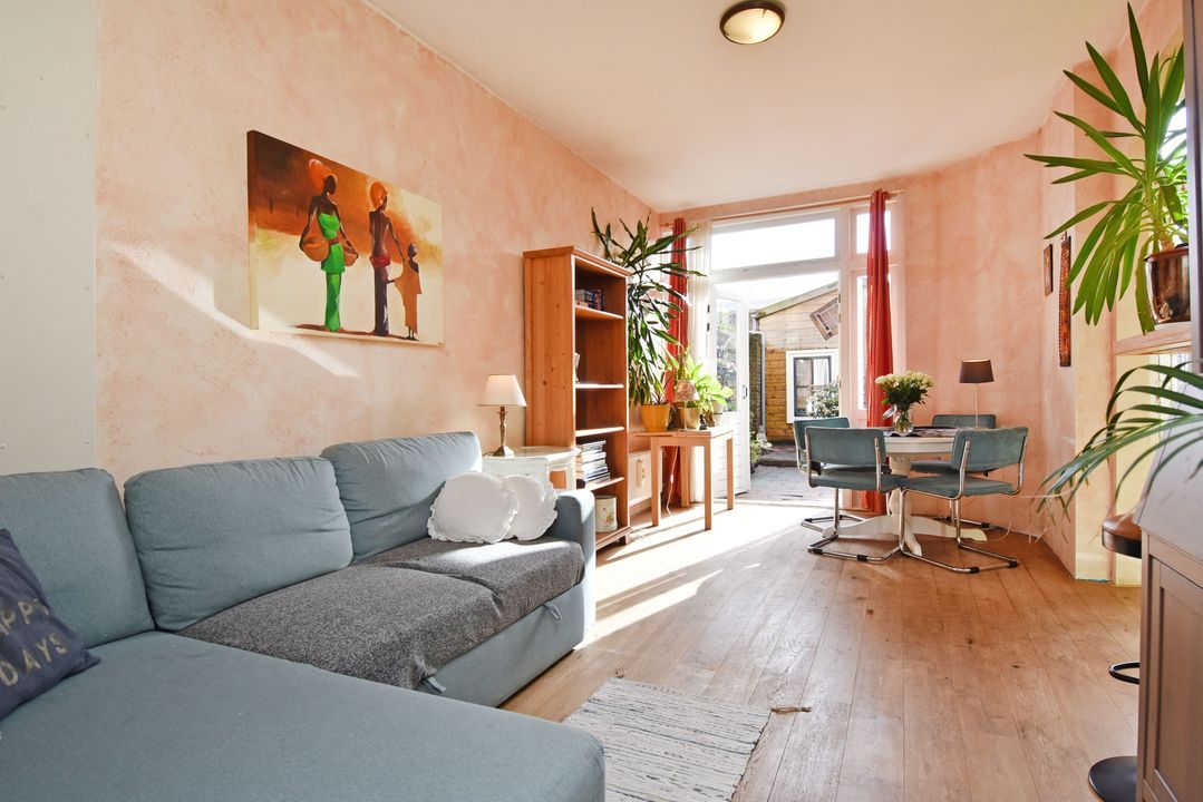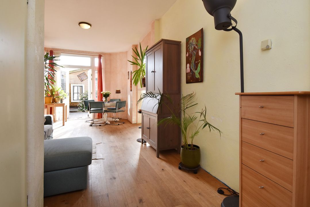 entree benedenwoning op straatniveau; ruime hal met meterkast (elektra 7 groepen + 2x ALS), toegang tot woon-/eetkamer ca. 3,05x8,05m voorzien van houten strokenvloer, vaste kast, openslaande deuren naar de achtertuin en doorgang naar half open keuken ca. 1,90x2,90m voorzien van een net keukenblok met inductiekookplaat, oven, afzuigkap, vaatwasmachine, eetbar, cv-combiketel (Bosch 2004) en toegang tot de achtertuin; voorslaapkamer ca. 2,80x3,10m; vanuit de hal toegang tot geheel betegelde badkamer ca. 1,60x2,75m en 0,50x1,00m voorzien van inloopdouche, vaste wastafel, vrijdragend closet, opstelling wasmachine en handdoekradiator; ruime voorslaapkamer ca. 13m2; achtertuin ca. 27m2 op het zuiden met tuinhuis ca. 2,15x3.85m voorzien van slaapkamer met betegelde badkamer met douche, vrijdragend closet, fontein in meubel en mechanische ventilatie.