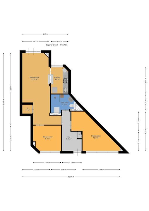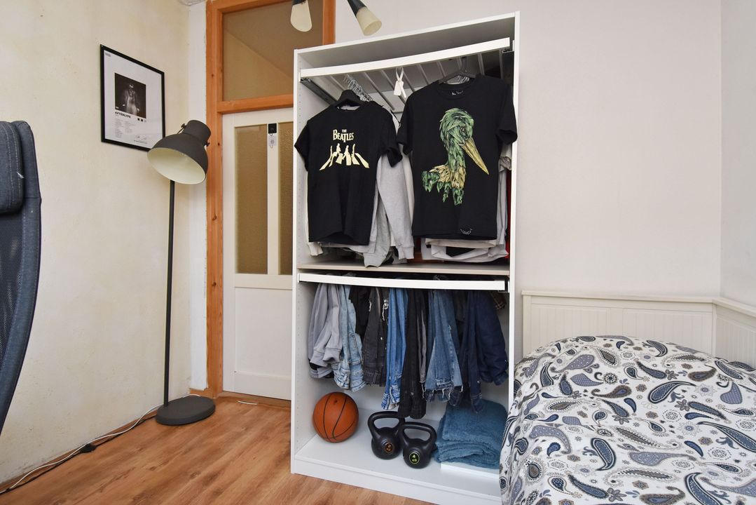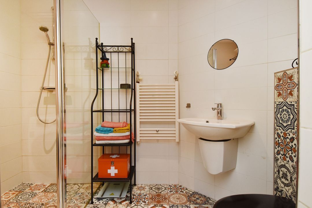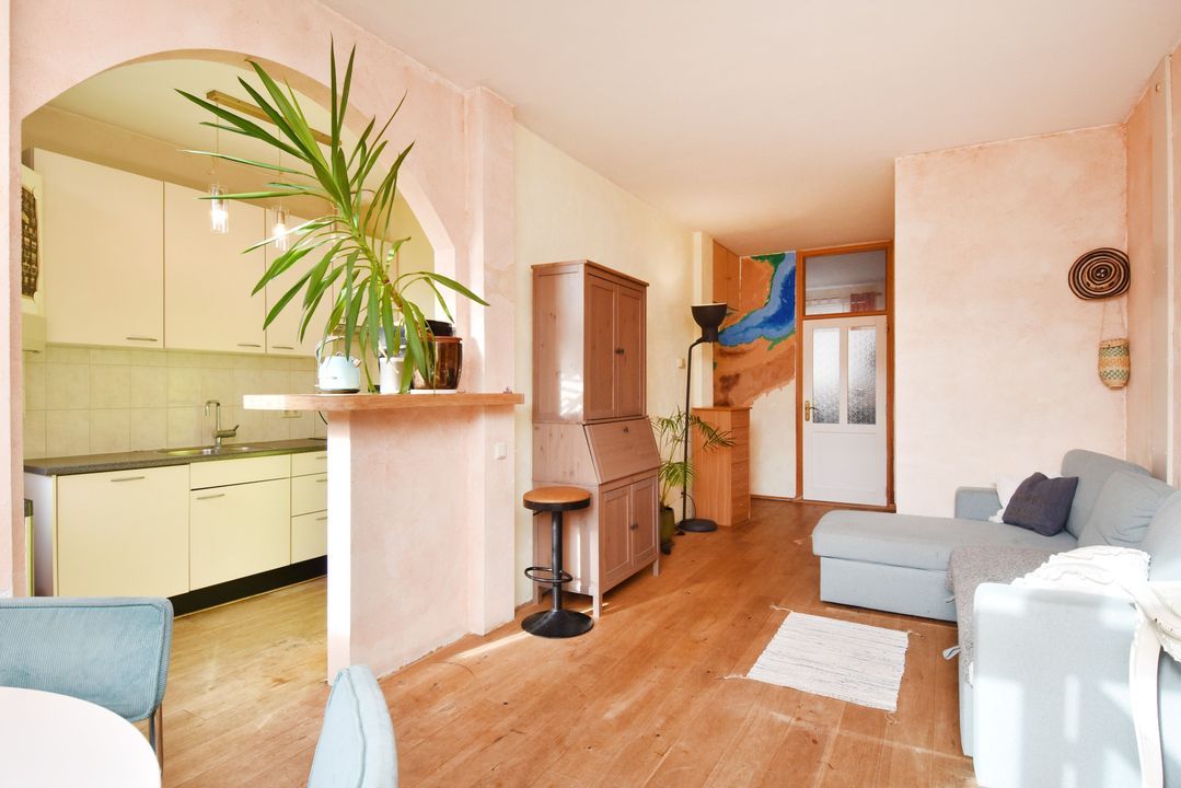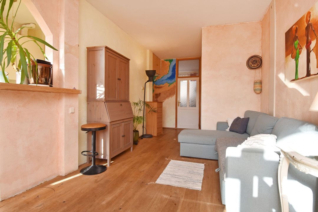 entree benedenwoning op straatniveau; ruime hal met meterkast (elektra 7 groepen + 2x ALS), toegang tot woon-/eetkamer ca. 3,05x8,05m voorzien van houten strokenvloer, vaste kast, openslaande deuren naar de achtertuin en doorgang naar half open keuken ca. 1,90x2,90m voorzien van een net keukenblok met inductiekookplaat, oven, afzuigkap, vaatwasmachine, eetbar, cv-combiketel (Bosch 2004) en toegang tot de achtertuin; voorslaapkamer ca. 2,80x3,10m; vanuit de hal toegang tot geheel betegelde badkamer ca. 1,60x2,75m en 0,50x1,00m voorzien van inloopdouche, vaste wastafel, vrijdragend closet, opstelling wasmachine en handdoekradiator; ruime voorslaapkamer ca. 13m2; achtertuin ca. 27m2 op het zuiden met tuinhuis ca. 2,15x3.85m voorzien van slaapkamer met betegelde badkamer met douche, vrijdragend closet, fontein in meubel en mechanische ventilatie.