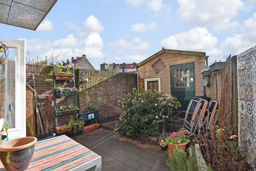 OM DE HOEK VAN DE WINKELS AAN HET TESSELSEPLEIN EN OP LOOPAFSTAND VAN DE BOSJES VAN POOT, DE DUINEN, HET ZUIDERSTRAND EN DE (JACHT)HAVENS VAN SCHEVENINGEN GELEGEN DRIEKAMER BENEDENWONING MET ACHTERTUIN OP HET ZUIDEN EN TUINHUIS.