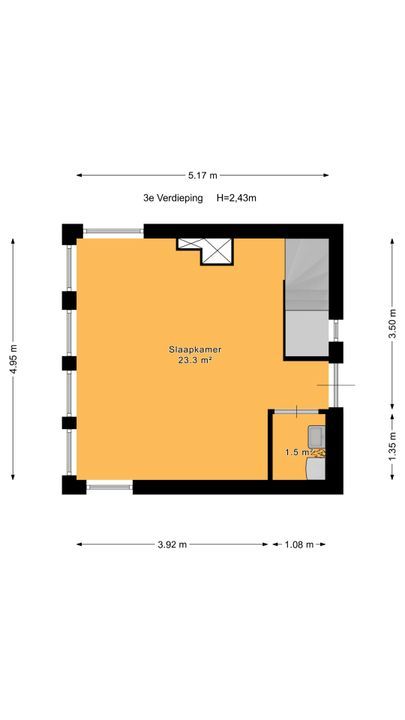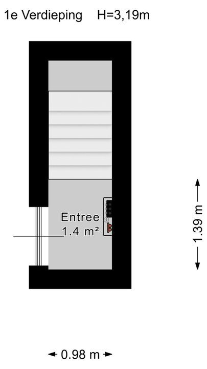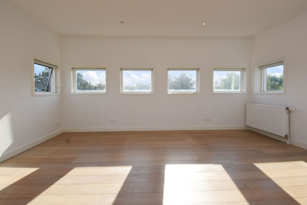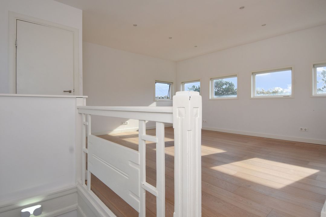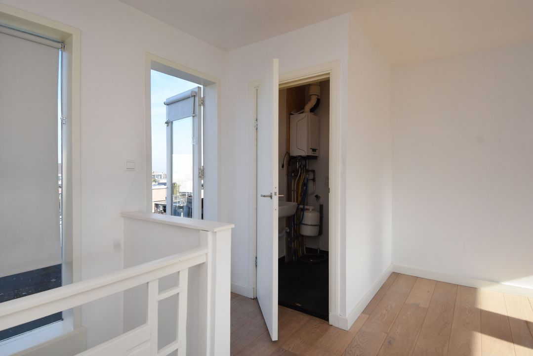 trapopgang naar de 3e verdieping; hier bevindt zich de royale, zeer lichte ‘torenkamer’ ca. 5,00x5,20m met rondom vrij uitzicht en voorzien van een airco-installatie. Tevens is er een wasruimte met opstelling CV-combiketel (Remeha Tzerra), uitstort gootsteen, wasmachineaansluiting en deur naar een eventueel te realiseren dakterras.