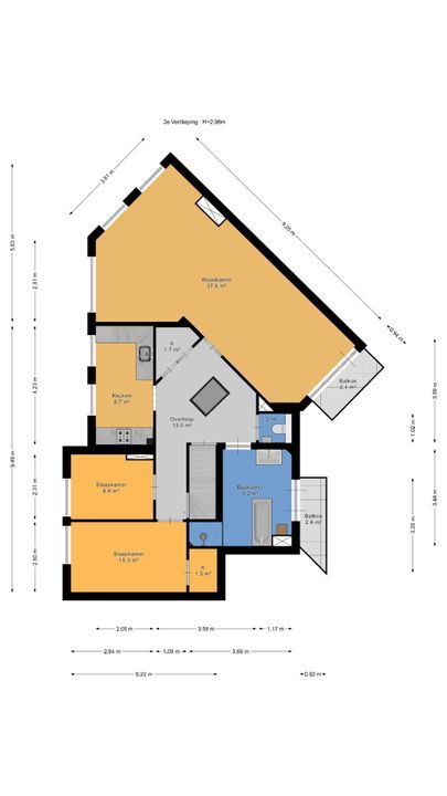 91m² Balkon 3 kamers