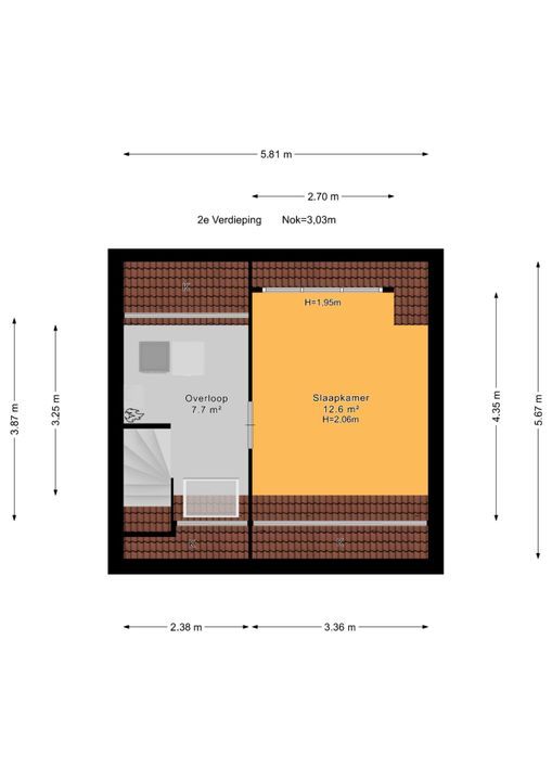 * op de 2e verdieping is een vliering aangebracht;
