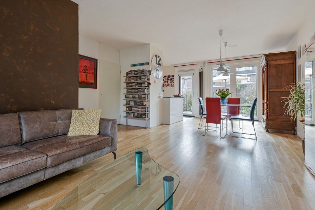 * de woonkamer is voorzien van een Eiken parketvloer en de 1e verdieping is voorzien van laminaatvloeren;