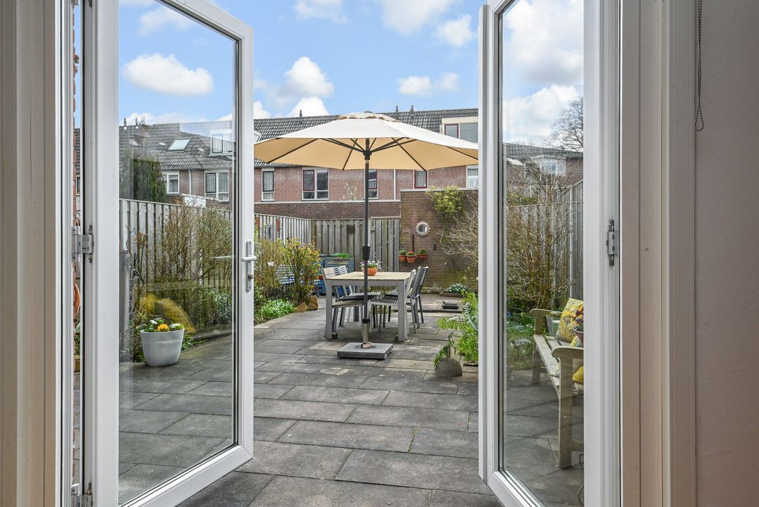 * de woning is aan de voorzijde voorzien van houten buitengevelkozijnen met dubbele beglazing en de achterzijde is geheel voorzien van kunststof buitengevelkozijnen met triple glas en (rol-)horren;